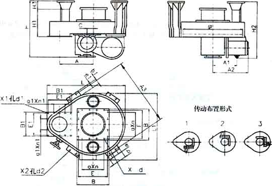 型 號 | L | L1 | L2 | H | H1 | F | E | E1 | E2 | E3 | G | G1 | G2 | G3 | n | d |