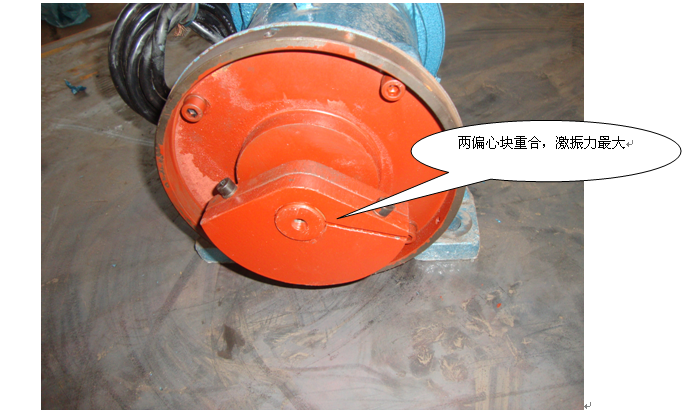 三:松開活動(dòng)偏動(dòng)塊上的固定螺栓,調(diào)整活動(dòng)偏心塊與固定偏心塊之間的夾角,當(dāng)兩偏心塊完全重合時(shí),振動(dòng)電機(jī)的激振力大,當(dāng)兩偏心塊垂直時(shí),振動(dòng)電機(jī)的激振力小。.png)